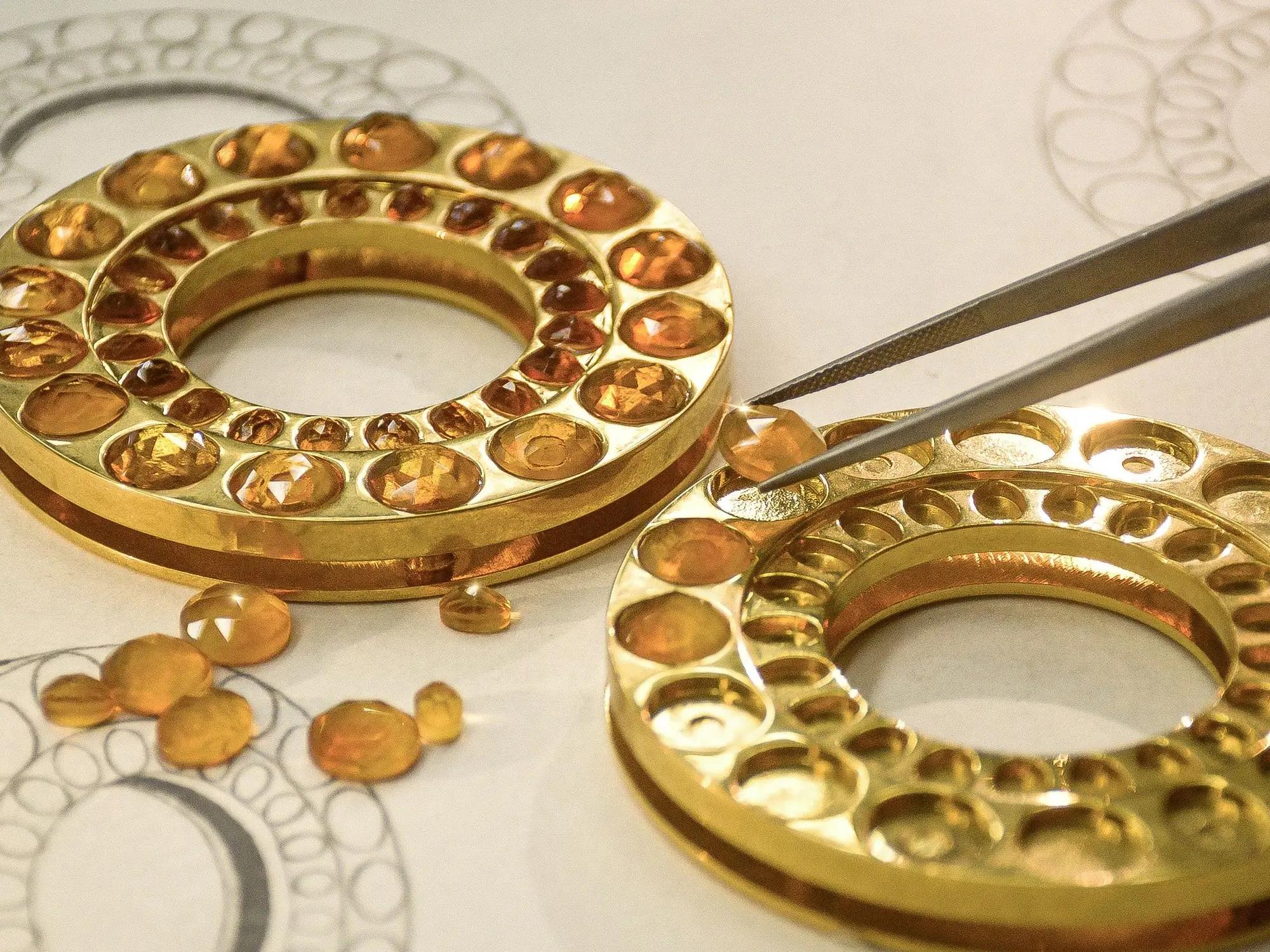 Semi-precious stones, like dendrite opal, sunstones, and sodalite, are believed to possess unique healing properties and are used in Aranyani's Stone Drops collections. These stones aim to fill customers' days with positivity and good vibes, promoting emotional balance and reducing stress. Whether or not one believes in their healing powers, their beauty remains undeniable.