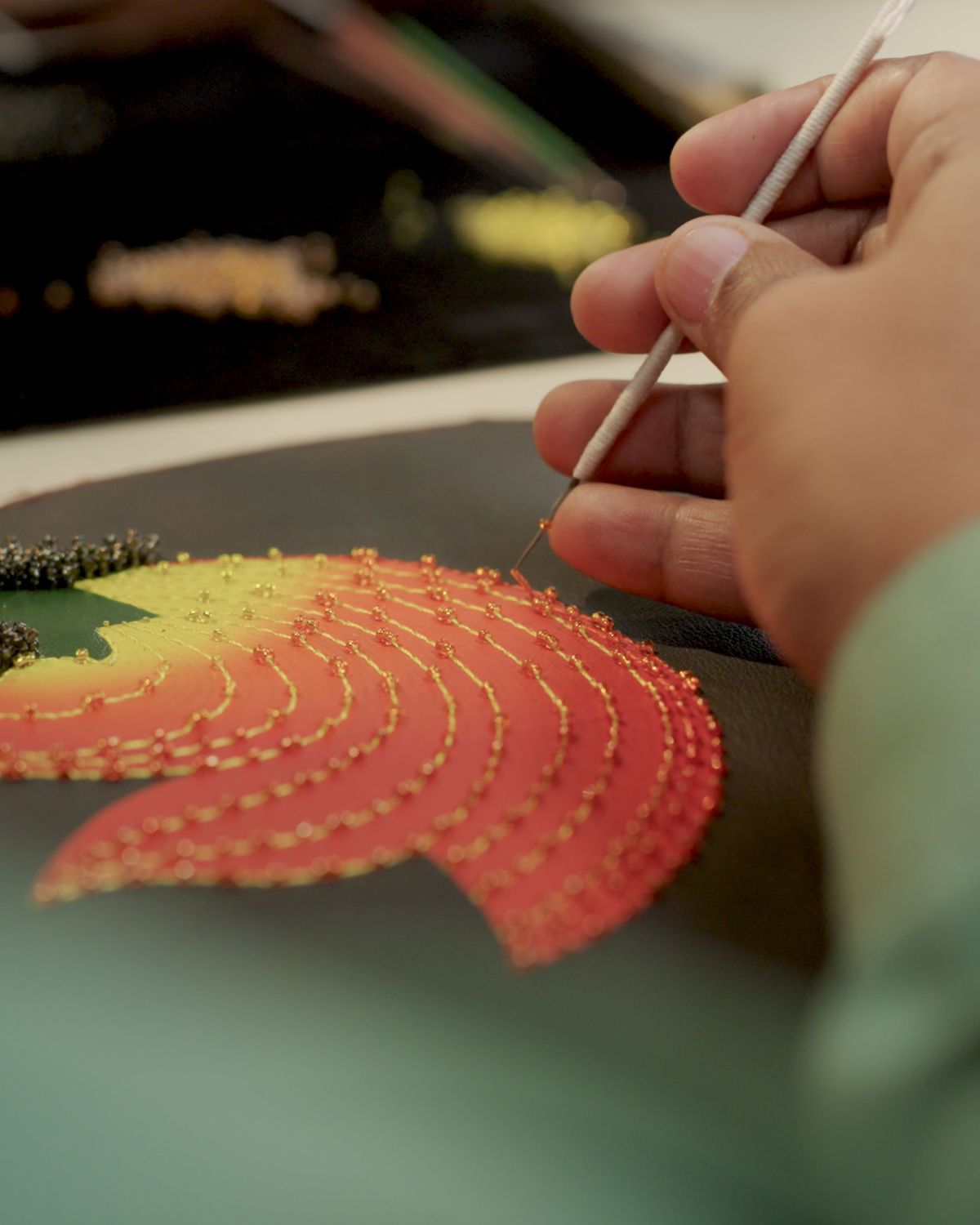 Each Aranyani bag is a testament to traditional Indian artistry. Hand embroidery, gemstone setting, hand painting, and gold gilding come together in pieces made to last a lifetime. Our atelier in Bangalore preserves these skills through training and mentorship while integrating modern sustainability practices like solar panels, rainwater harvesting, and a plastic-free, low-carbon design.