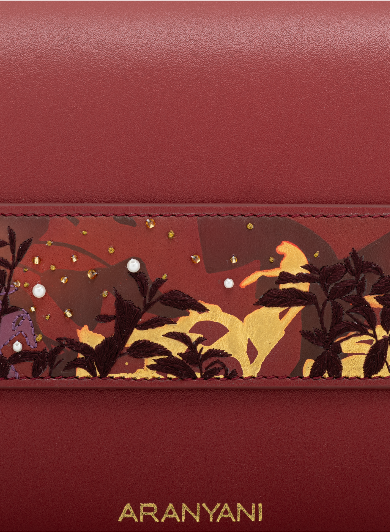 When not in use, place the provided cushion inside your bag to maintain its silhouette, and store it with moisture-absorbing silica gel in its Aranyani dust bag.